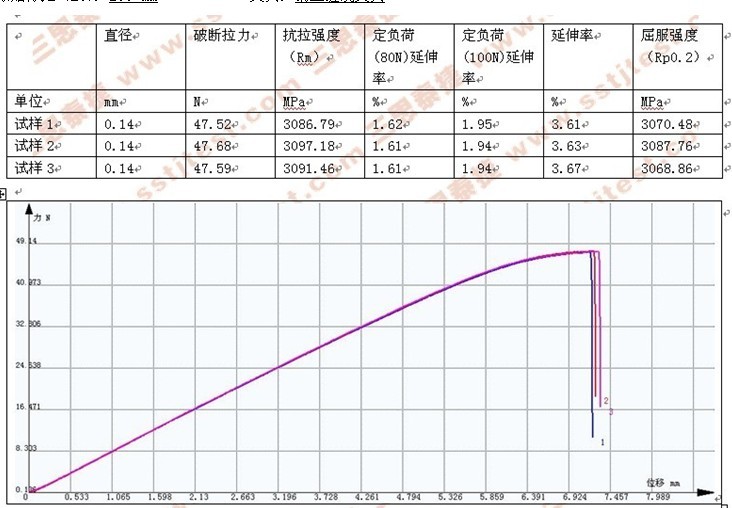 求取參數(shù):破斷拉力、抗拉強(qiáng)度、定負(fù)荷延伸率、延伸率、屈服強(qiáng)度