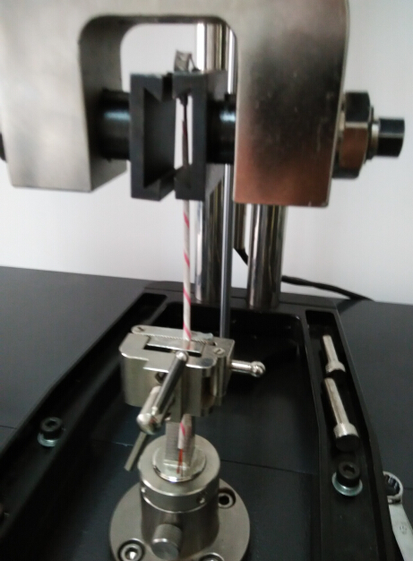 剛拿到試樣的時候,往往會無從下手,不知道如何選擇夾持裝置。不過通過對試樣的結構進行觀察,發(fā)現線耳可以通過對夾夾具的鉗口的縫隙勾住,金屬絲和膠片通過合頁夾具夾緊。這樣進行測試一方面不會直接夾持線耳,從而保護了線耳,另一方面下夾具直接夾持膠片和金屬絲,避免單獨夾持金屬絲導致打滑現象。